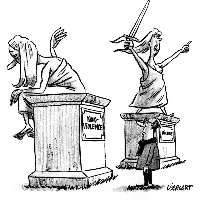 Espérons cependant que la non-violence ne devienne jamais une mode, comme être marxiste en fut une dans les années 1960, ou être gauchiste en fut également une dans les années 1970, et qu’aujourd’hui être néo-libéral est de bon teint. Épouser benoîtement une opinion majoritaire, c’est-à-dire une doxa comme disaient les Grecs, n’est jamais facteur d’intelligence et de liberté.