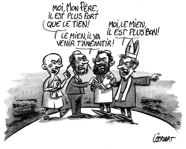 « Les savoirs unissent alors que les croyances séparent » : Philippe Meirieu2 estime que « le rôle majeur de l’école est de créer du commun (…) en permettant aux enfants, par l’art en particulier, de découvrir qu’ils participent tous de “l’humaine condition”. En les aidant à prendre le temps de la réflexion, du débat serein, de la documentation rigoureuse », qu’il s’agisse de l’histoire des religions, de l’histoire de la condition féminine, ou de s’informer sur les avancées scientifiques. « Toute personne a droit à la liberté de penser, de conscience et de religion ; ce droit implique la liberté de changer de religion ou de conviction ainsi que de manifester sa religion ou sa conviction, seule ou en commun, tant en public qu’en privé […] » (Déclaration Universelle des Droits de l’homme, article 18, 10 décembre 1948). Tout citoyen a également le droit de critiquer publiquement religions et pensées philosophiques, y compris par la comédie ou la caricature. Mais être laïque n’oblige pas non plus à mépriser tout ce que la raison ne parvient pas à maîtriser, ni à refuser d’écouter les personnes, leur foi et leurs aspirations. C’est pour assurer à tous la sécurité qu’il est nécessaire de distinguer le politique (gouvernement, organisation de la société) et le sens philosophique ou religieux que chacun peut donner à sa propre vie (religion, prière). Les agents de l’État doivent veiller à la liberté de chaque citoyen (qui commence d’ailleurs par des conditions de vie décentes…), à le protéger de toute servitude, y compris à l’égard de son propre groupe d’appartenance.